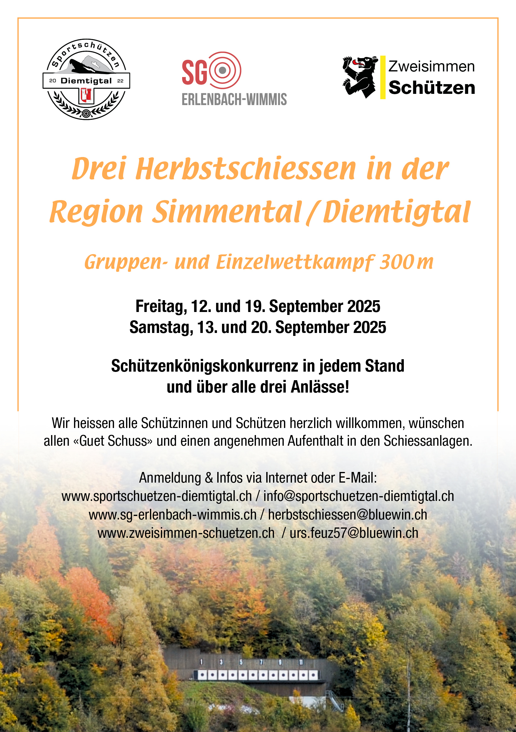 Das Datum für das nächste Herbstschiessen steht fest. Wir freuen uns auf euren Besuch im September 2025. Unten findet Ihr den Flyer mit den Daten. Den Schiessplan findet Ihr ebenfalls hier unten auf dem Button.